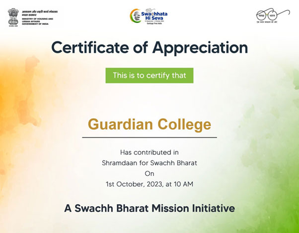 Swatch Bharat Mission Certificate for College
